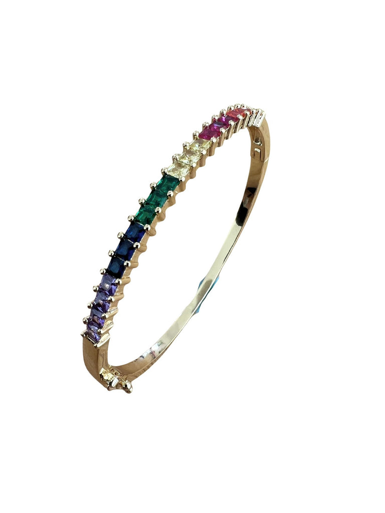The Colourwave Bangle is a stunning piece from our Opulent Aura Collection. This bangle is made from Stainless Steel and Inlay Rhinestones. Our Colourwave Bangle looks great stacked with other Harvest Lane bangles!